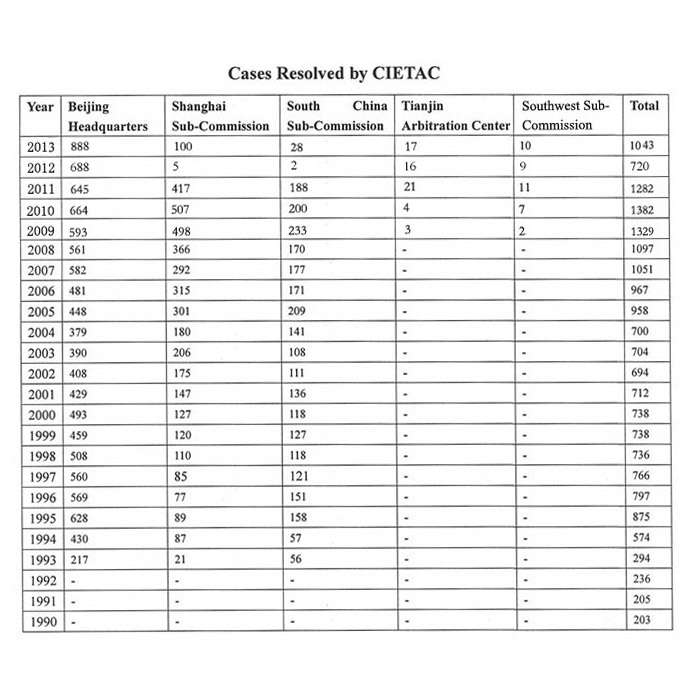 Note: The statistics of the Shanghai Sub-Commission and the South China Sub-Commission in 2012 and 2013 in the abve charts reprensent the statistics of the Shanghai Office and the South China Office of the CIETAC Secretariat.